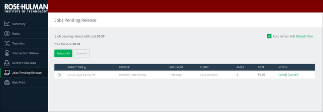| Black & White Print Queue | print.rose-hulman.edu/RHIT%20BW%20Printing | All other campus printers |